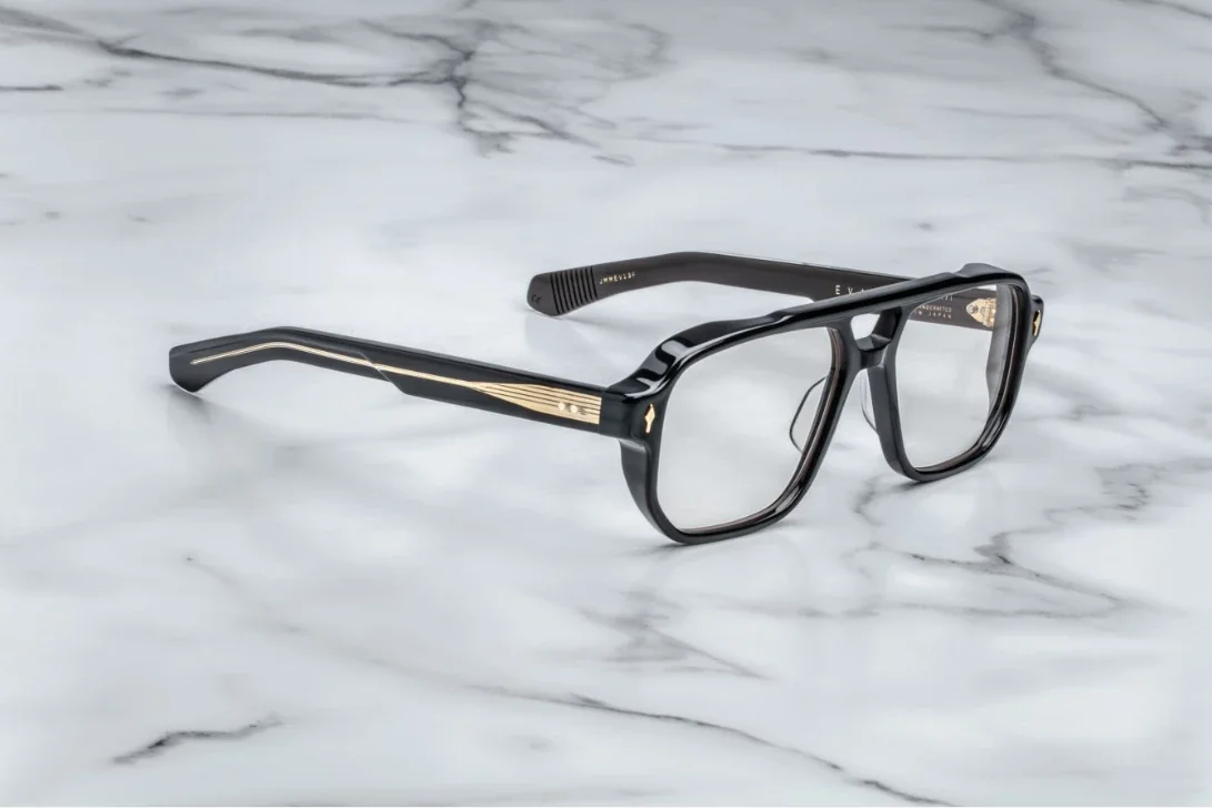 The Jacques Marie Mage Evans frame is a bold, character-driven design that draws inspiration from classic 1970s eyewear with a modern, sculptural twist. Defined by its confident square silhouette and generous acetate thickness, the Evans makes a strong visual statement while maintaining refined balance. Custom metal hardware, signature arrowhead pins, and finely polished finishes showcase JMM’s obsessive attention to detail and craftsmanship. With its expressive proportions and vintage-inflected attitude, the Evans frame projects creative confidence and unmistakable presence—ideal for those who favor eyewear that feels both iconic and unapologetically individual.